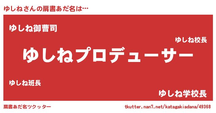 | 意味不明あだ名 | 『ペロリンゆしね』『永久保存ゆしね』 |