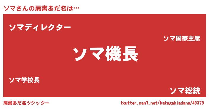 | ヒーロー風カッコイイあだ名 | 『サイバー戦士ソマ』『ウルトラソママン』 |