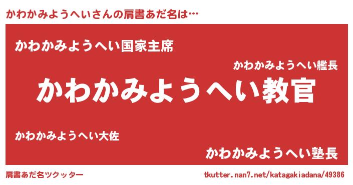 | 意味不明あだ名 | 『住所不定無職かわかみようへい(6歳)』 |