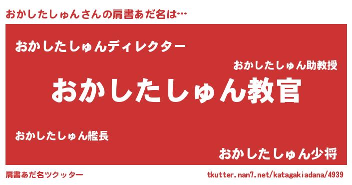 | ヘコむあだ名 | 『おかっぺ』『おかしたしゅん(爆)』 |
