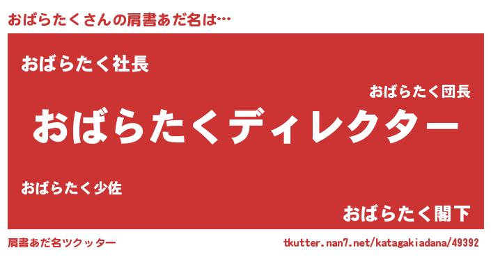 | 欧米人風あだ名 | 『アンジェラ・おばらたく』 |