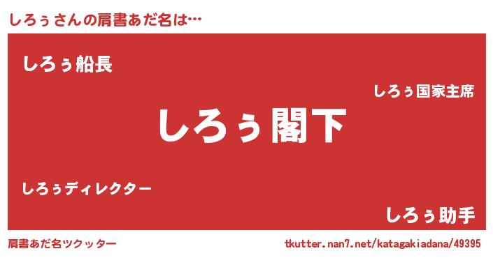 | 女子向けラノベタイトル風あだ名 | 『闇のしろぅ』『しろぅ恋絵巻』 |