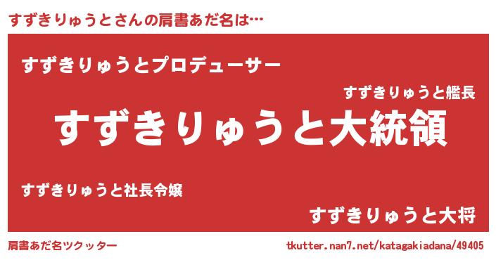 | 男性向けラノベタイトル風あだ名 | 『やはりすずきりゅうとの青春ラブコメはまちがっている 』 |
