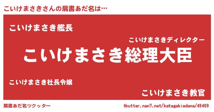 | 女子向けラノベタイトル風あだ名 | 『こいけまさきの雑貨屋さん』 |