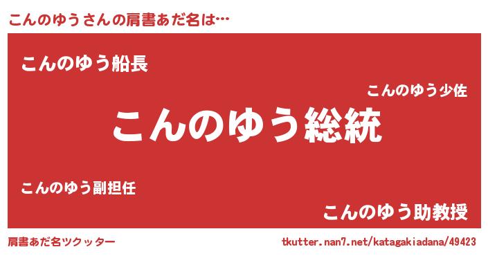 | 意味不明あだ名 | 『自称こんのゆう』『永久保存こんのゆう』 |
