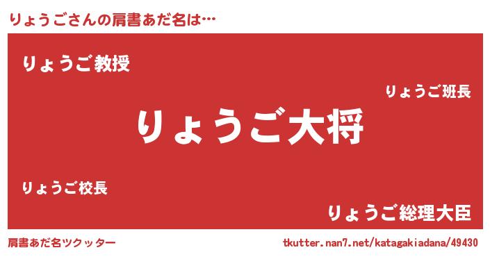 | 男性向けラノベタイトル風あだ名 | 『りょうご~年齢イコール彼女いない歴の魔法使い~』 |