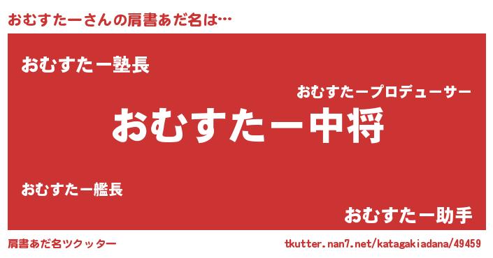 | 男性向けラノベタイトル風あだ名 | 『転生したらおむすたーだった件』 |