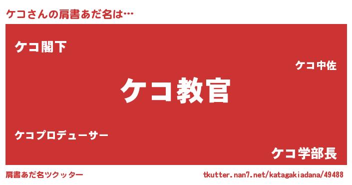 | 男性向けラノベタイトル風あだ名 | 『魔弾の王とケコ』『魔法科高校のケコ』 |