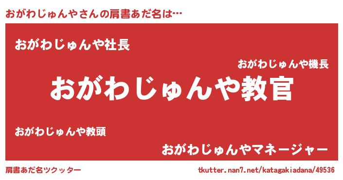 | 男性向けラノベタイトル風あだ名 | 『この素晴らしい世界におがわじゅんやを!』 |