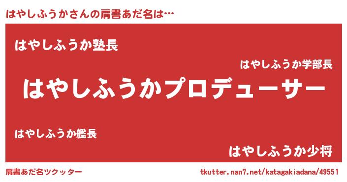 | 男性向けラノベタイトル風あだ名 | 『はやしふうかに滅ぼされるだけの簡単なお仕事です』 |