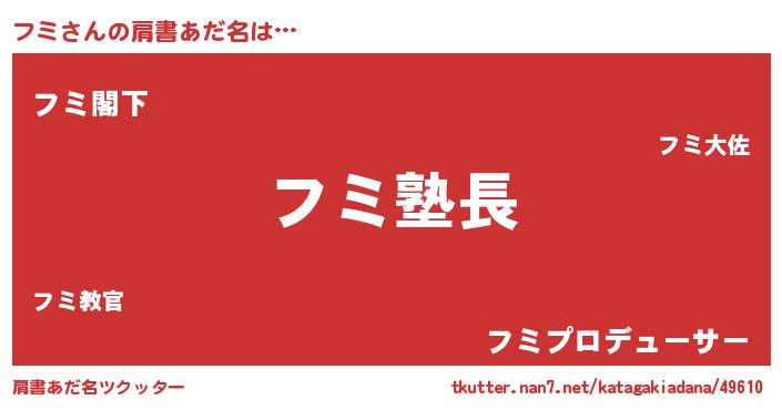 | ポケモン風あだ名 | 『ヒフミ』『フミセウス』『フミゴンZ』 |