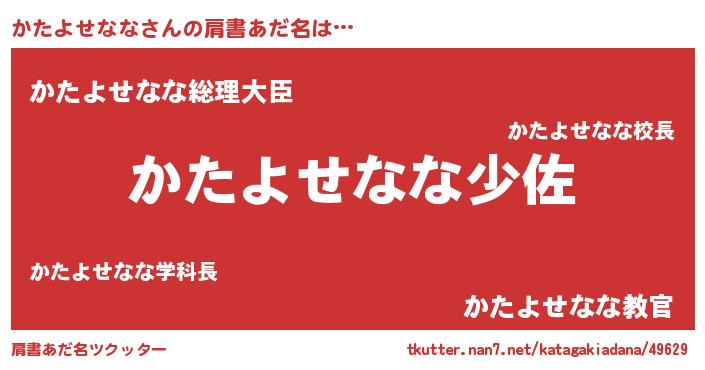 | 男性向けラノベタイトル風あだ名 | 『転生したらかたよせななだった件』 |