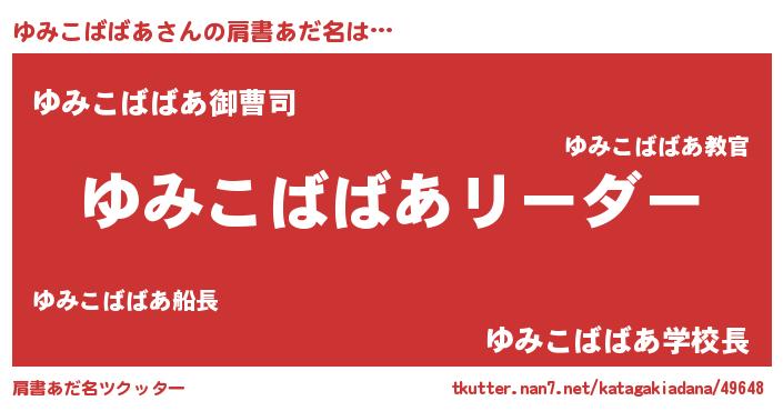| 男性向けラノベタイトル風あだ名 | 『ダンジョンにゆみこばばあを求めるのは間違っているだろうか』 |