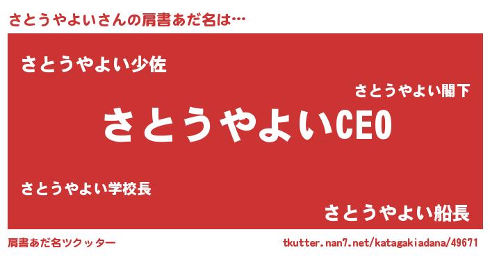 | 男性向けラノベタイトル風あだ名 | 『サトウヤヨイアートオンライン』 |