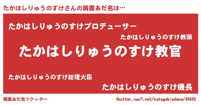 | 意味不明あだ名 | 『住所不定無職たかはしりゅうのすけ(68歳)』 |