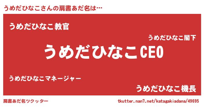 | ヒーロー風カッコイイあだ名 | 『スーパーウメダヒナコ』『仮面ウメダー』 |