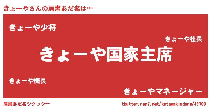 | ヒーロー風カッコイイあだ名 | 『ウルトラきょーやマン』『黄金騎士キョ』 |