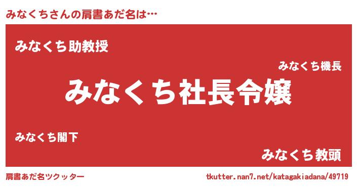 | 男性向けラノベタイトル風あだ名 | 『みなくちの憂鬱』 |