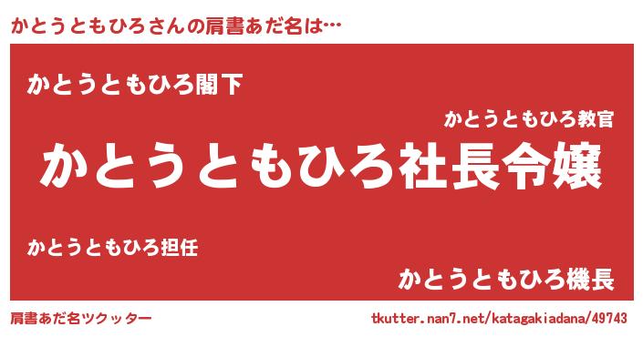 | ヒーロー風カッコイイあだ名 | 『スーパーカトウトモヒロ』 |