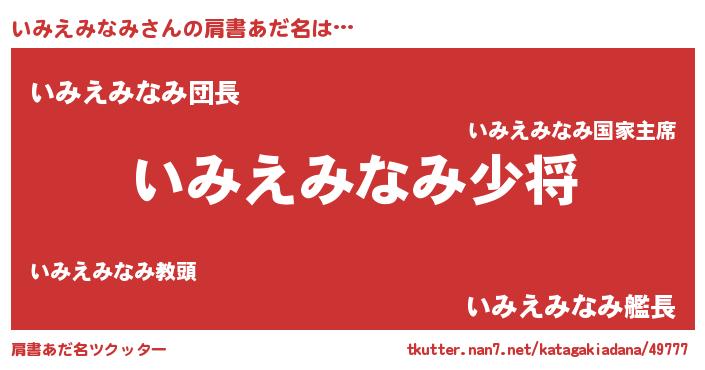 | 男性向けラノベタイトル風あだ名 | 『イミエミナミスレイヤー』 |