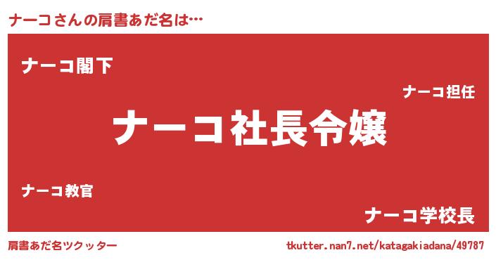 | ヒーロー風カッコイイあだ名 | 『スーパーナーコ』『最強戦士ナーコ』 |