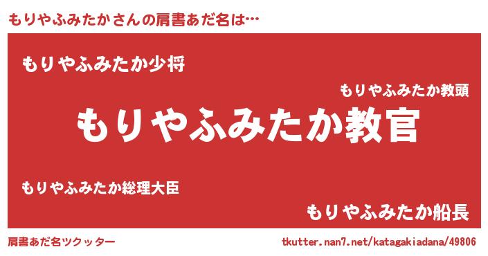 | ヘコむあだ名 | 『もりやふみたか(苦笑)』『酢こんぶ』 |