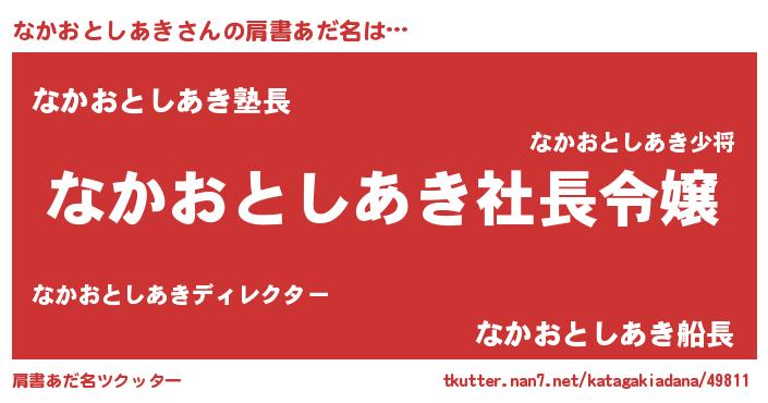 | 女子向けラノベタイトル風あだ名 | 『(仮)なかおとしあきのやんごとなき事情』 |