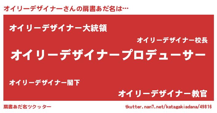| ファンタジー風あだ名 | 『エターナルオイリーデザイナーー』 |
