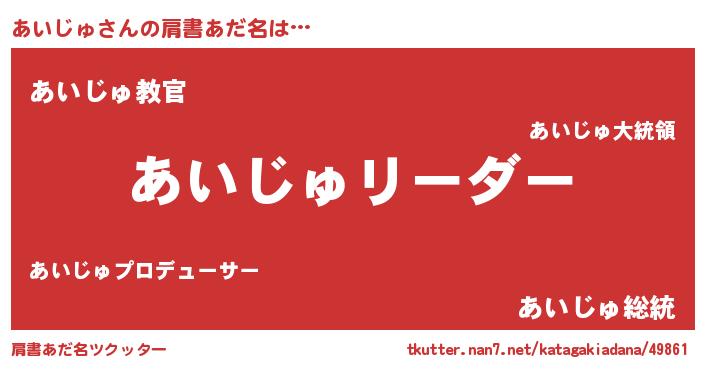 | 意味不明あだ名 | 『とにかく怪しいあいじゅ』 |