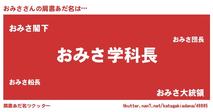 | 女子向けラノベタイトル風あだ名 | 『おみさ夫妻のなれそめ』『闇のおみさ』 |