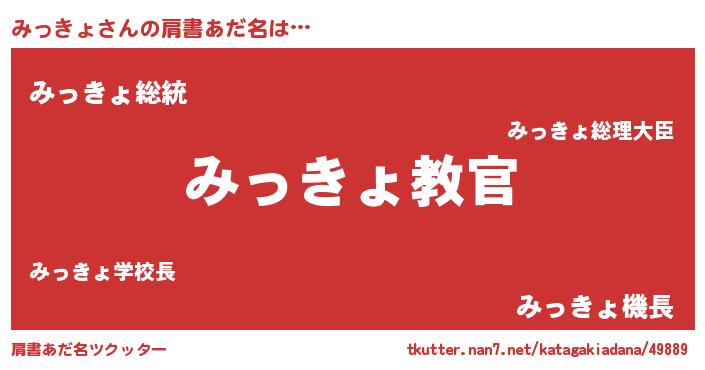 | 男性向けラノベタイトル風あだ名 | 『この素晴らしい世界にみっきょを!』 |