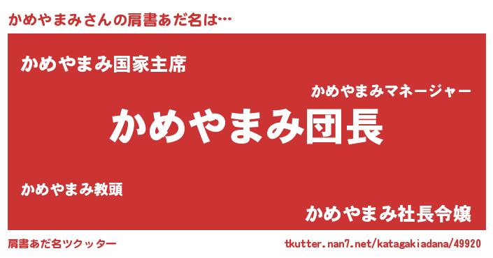 | 男性向けラノベタイトル風あだ名 | 『ダンジョンにかめやまみを求めるのは間違っているだろうか』 |