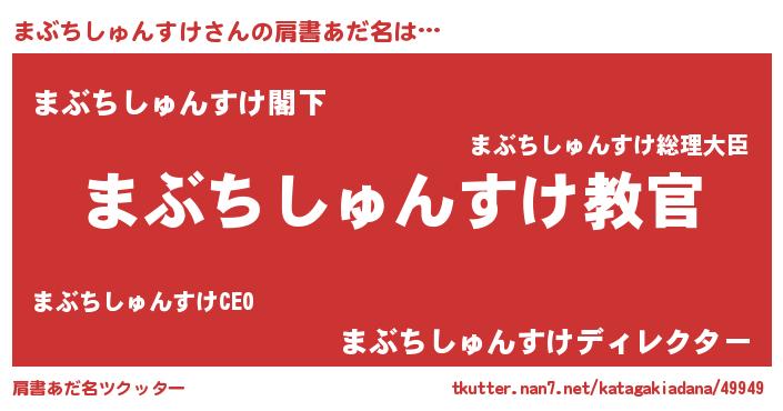 | 意味不明あだ名 | 『住所不定無職まぶちしゅんすけ(74歳)』 |