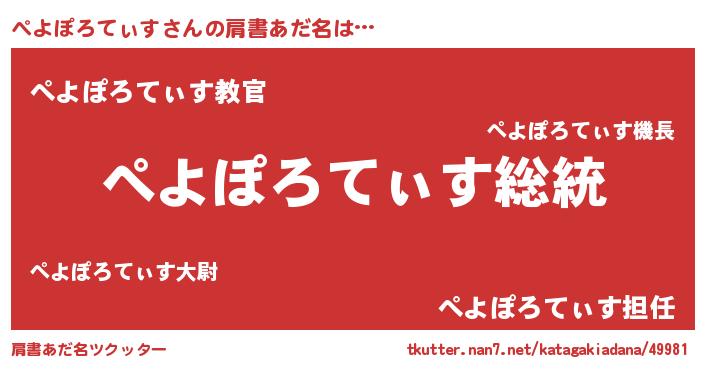 | 女子向けラノベタイトル風あだ名 | 『ぺよぽろてぃすなんてお断りですっ。』 |