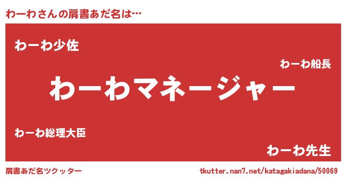 | ヒーロー風カッコイイあだ名 | 『ネオワーワ』『ウルトラわーわマン』 |