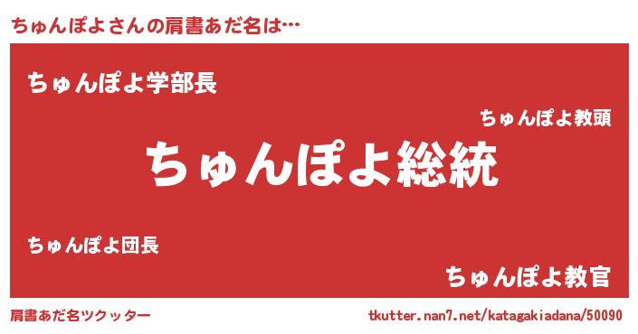 | 女子向けラノベタイトル風あだ名 | 『ちゅんぽよなんてお断りですっ。』 |
