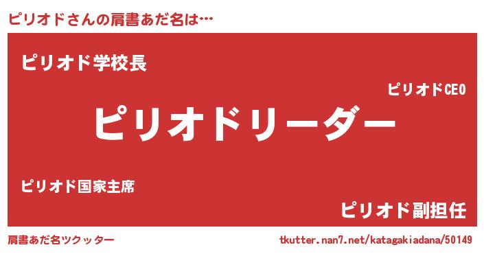 | 女子向けラノベタイトル風あだ名 | 『ピリオド様がみてる』『ピリオド恋絵巻』 |
