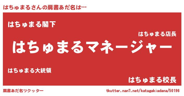 | 男性向けラノベタイトル風あだ名 | 『はたらくはちゅまるさま!』 |