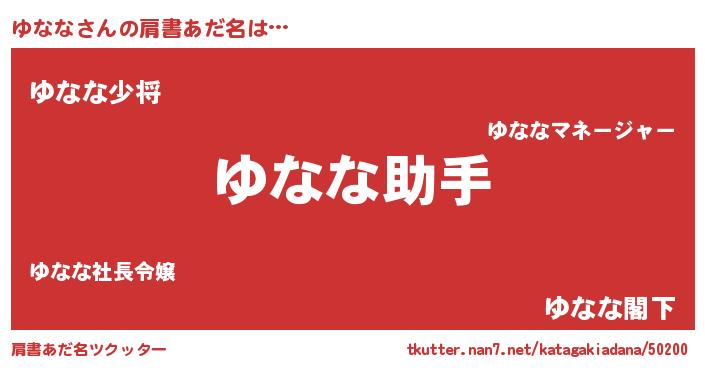 | 女子向けラノベタイトル風あだ名 | 『ゆなな恋絵巻』『ゆななの玉の輿計画!』 |