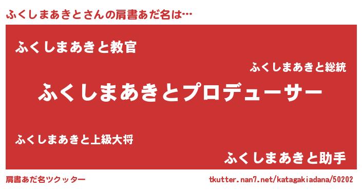 | ヘコむあだ名 | 『ふくもー』『ふくしまあきと(爆)』 |