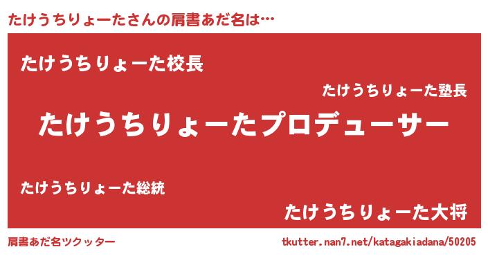 | 男性向けラノベタイトル風あだ名 | 『はたらくたけうちりょーたさま!』 |