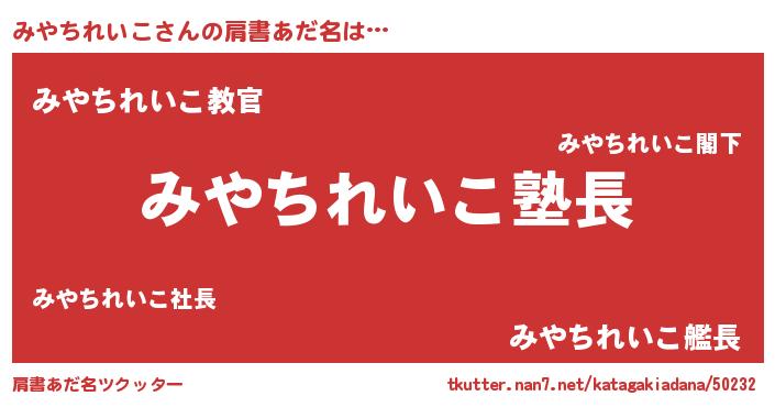 | 意味不明あだ名 | 『とにかく怪しいみやちれいこ』 |