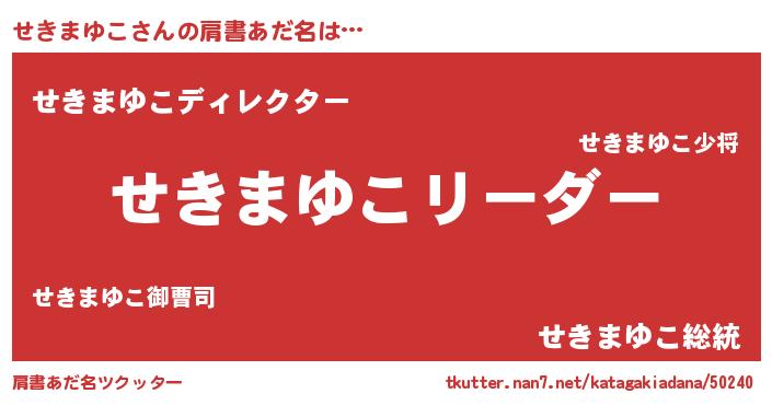 | 男性向けラノベタイトル風あだ名 | 『ダンジョンにせきまゆこを求めるのは間違っているだろうか』 |