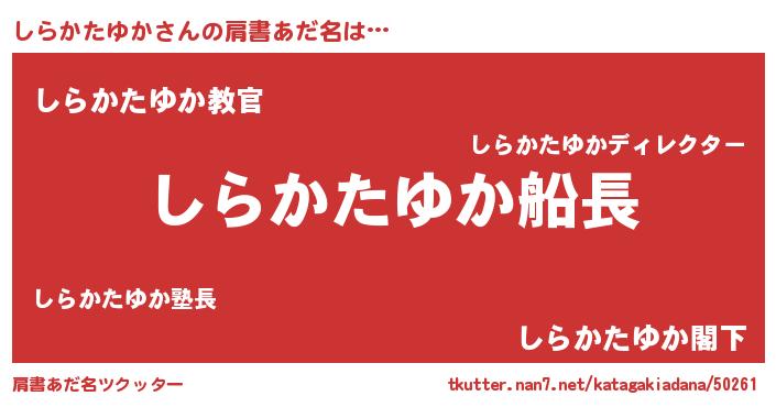 | 意味不明あだ名 | 『住所不定無職しらかたゆか(4歳)』 |
