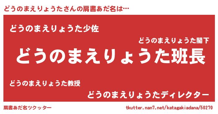 | 意味不明あだ名 | 『とにかく怪しいどうのまえりょうた』 |
