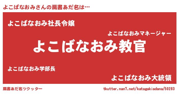 | 女子向けラノベタイトル風あだ名 | 『乙女ゲームの破滅フラグしかない悪役よこばなおみに転生してしまった…』 |