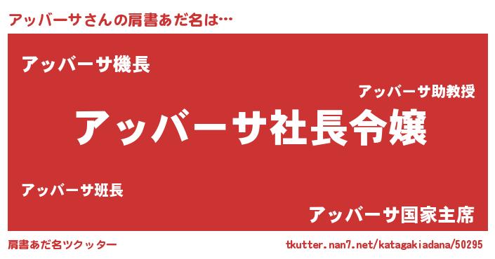 | ヒーロー風カッコイイあだ名 | 『スーパーアッバーサ』『暗黒騎士アッ』 |