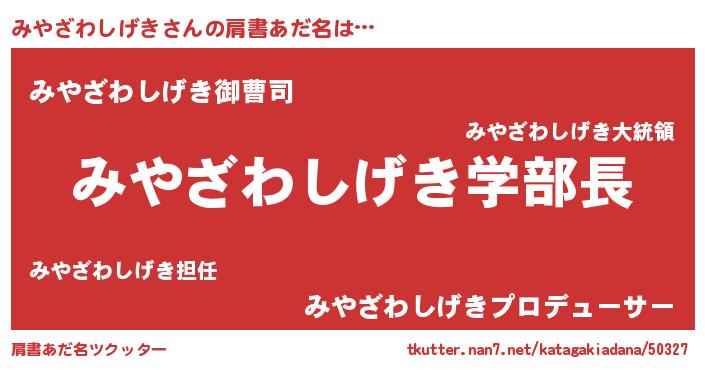 | 女子向けラノベタイトル風あだ名 | 『みやざわしげき恋絵巻』 |