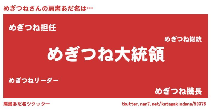 | 意味不明あだ名 | 『めぎつねフォーエバー』『自称めぎつね』 |