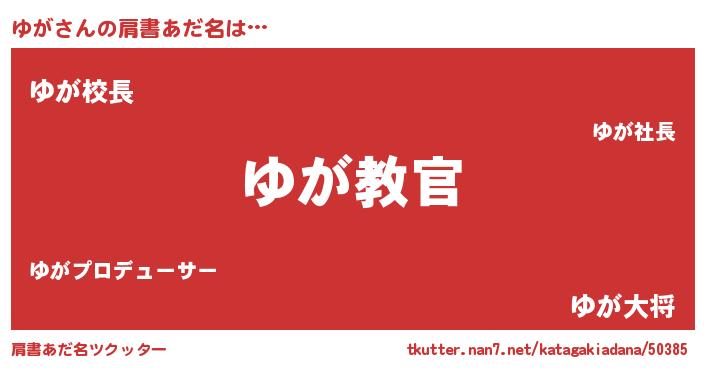 | 男性向けラノベタイトル風あだ名 | 『魔弾の王とゆが』『ユガスレイヤー』 |